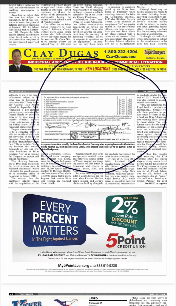 Another federal source aware of the matter raised questions about how the Winnie Hospital court case ended so quietly. “The federal and Texas authorities spent a lot of money investigating the case and bringing the charges. There are serious suspicions surrounding what happened behind the scenes and the role of judiciary members, if anything. There are serious background probes active. Investigators are interested in speaking to several current and former state employees. This was one of the most intricate healthcare-billing fraud cases in Southeast Texas history.”